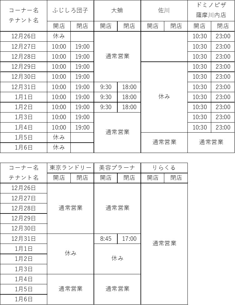 - テナント営業時間